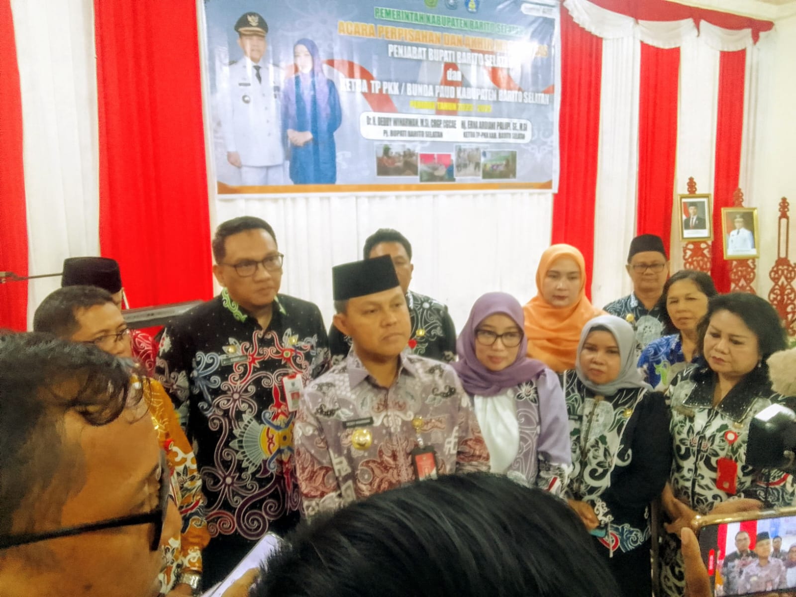 Buntok. elangbarito. Pj. Bupati Barito Selatan H. Deddy Winarwan usai acara perpisahan akhir masa tugas di Aula Bapperida Kabupaten Barito Selatan, Kamis 6 Februari 2025, kepada sejumlah wartawan mengatakan, yang paling berkesan adalah penerimaan masyarakat terhadap kami baik di kota maupun di semua desa, kami terima dengan tangan terbuka, menjadi keluarga, menjadi sahabat. Kemudian semua program dan kebijakan kami beserta ketua tim penggerak PKK, semua didukung oleh organisasi perangkat daerah dan juga masyarakat.