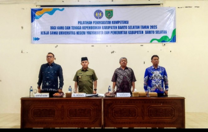 Buntok. elangbarito.                        Pembukaan pelatihan peningkatan kompetensi guru dan tenaga pendidikan serta pendaftaran program magister RPL universitas negeri Yogyakarta Kabupaten Barito Selatan kegiatan berlangsung sejak tanggal 18-19 Januari 2025 di Aula Bappeda Barsel. Hadir dalam pembukaan tersebut Pj. Bupati Barsel Dr. H. Deddy Winarwan, SSTP MSi CRGP CGCAE, dan jajarannya. Wakil Rektor Bidang Riset,  Kerja Sama, Sistem Informasi, dan Usaha, Universitas Negeri Yogyakarta, Prof. Dr. Margana, M.Hum., M.A dan rombongan.